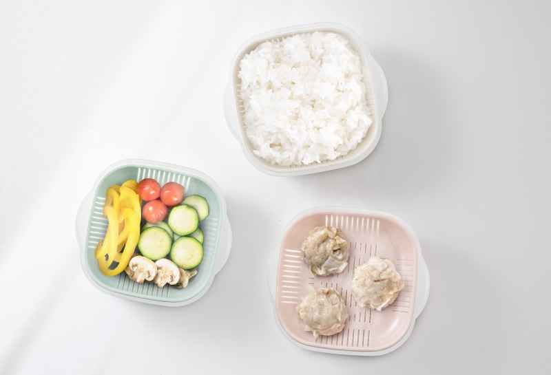 ざるの効果で蒸し器のようにご飯やシュウマイをふっくら仕上げます。表面が抗菌効果のある素材で、細菌の繁殖を抑制し安心です。